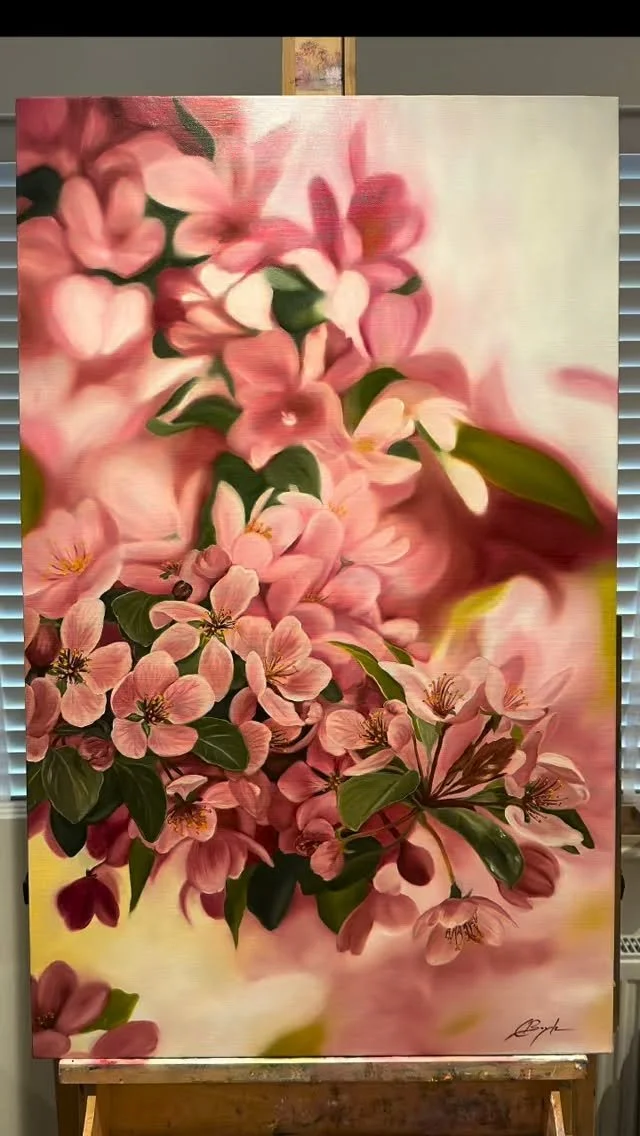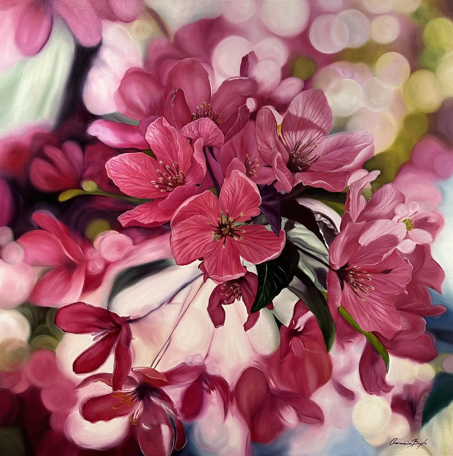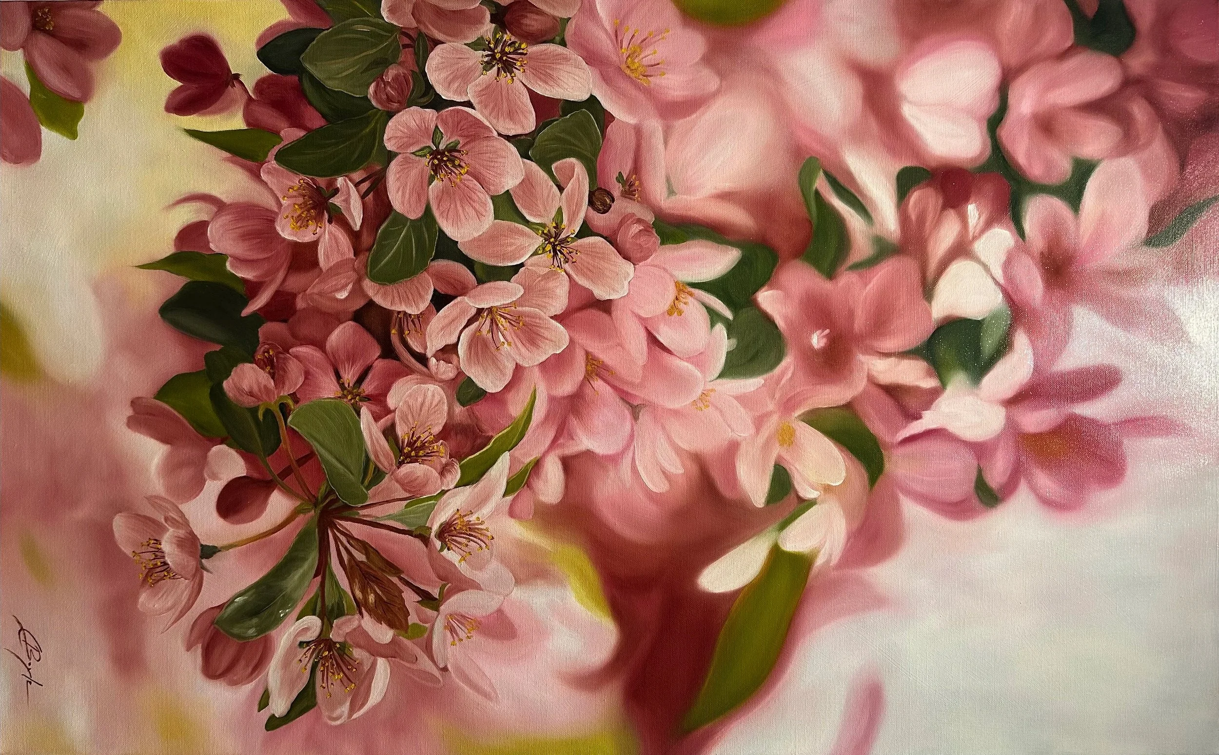 My paintings capture that feeling of pause. The dreamy bokeh, soft transitions, and suspended blossoms